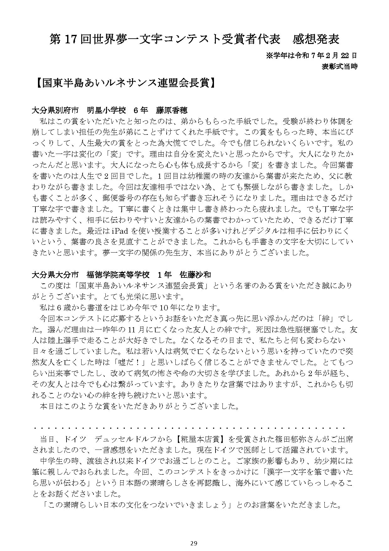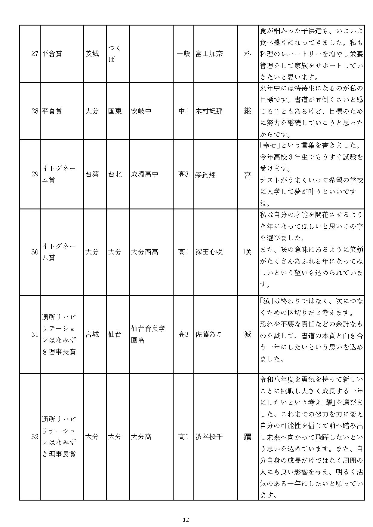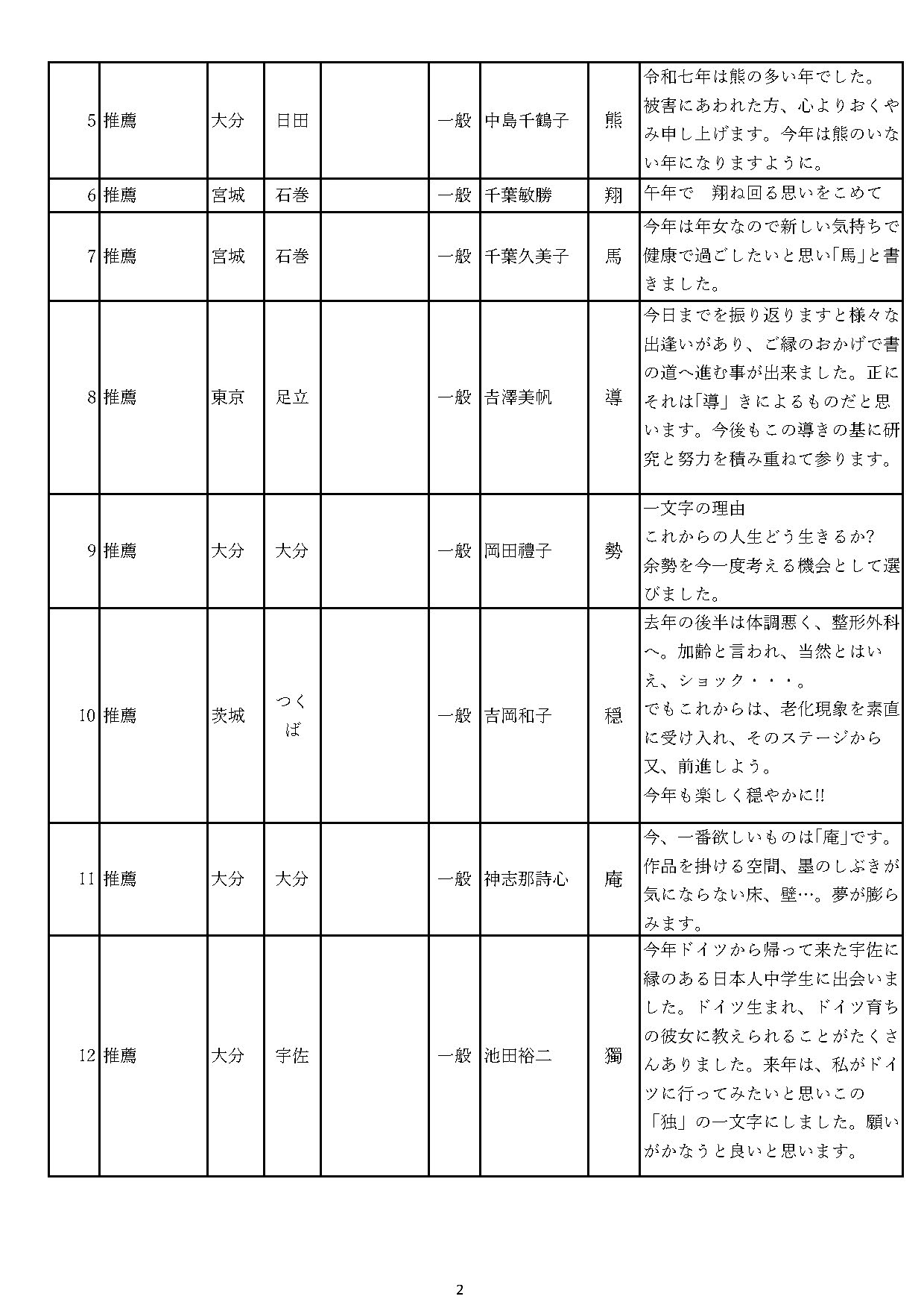 2026年の夢を漢字一文字で揮毫する「夢一文字コンテスト」。 全国・台湾・カンボジア・ドイツ・アメリカ・フランスなどから、5900点の応募がありました。 みなさま、ありがとうございました。 入選者の表彰式は、令和8年2月21日に、大分県国東市の「武蔵セントラルホール」で開催されました。